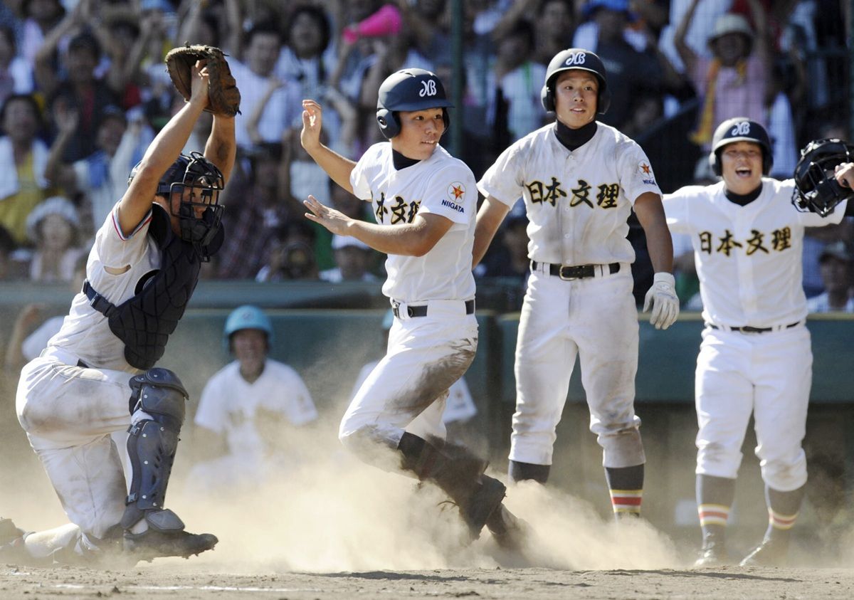 2009年夏の甲子園大会で、日本文理(新潟)vs中京大中京(愛知)の決勝戦は熱戦となった。日本文理は6点差をつけられて迎えた9回表に猛攻を見せ、1点差まで詰め寄るも、惜しくも準優勝に泣いた。これが新潟県勢では春夏通じて初めての決勝進出だった(写真:共同通信社)